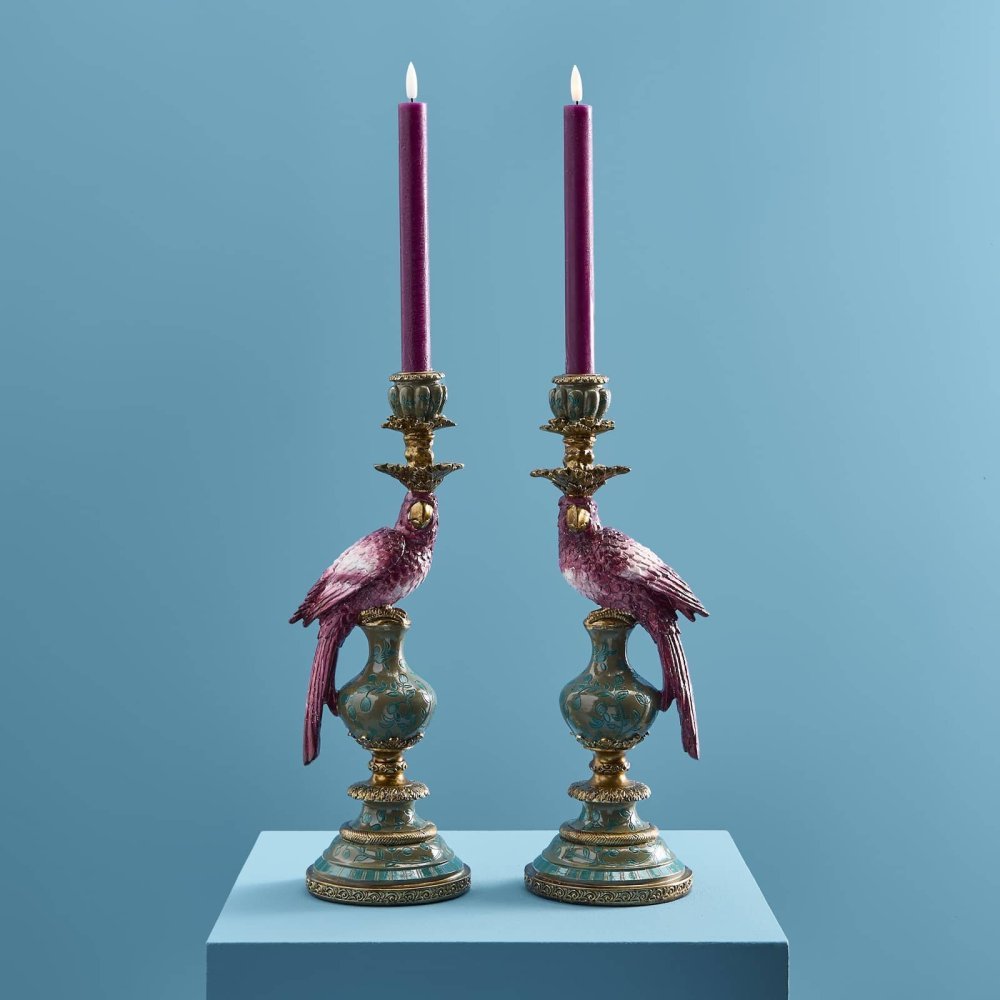 Set di 2 portacandele a forma di pappagallo in rosa e verde di Werner Vos.