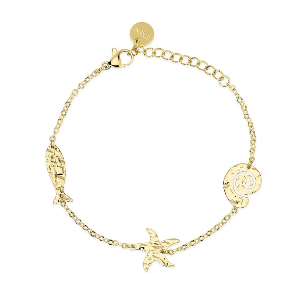 Scopri il bracciale in acciaio 316L con Pvd giallo di Kidult, un accessorio elegante e versatile. Questo bracciale presenta una lunghezza regolabile da 16 a 19 cm, perfetto per adattarsi a qualsiasi polso. Il design è arricchito da una catena con elementi martellati a forma di pesce, stella e conchiglia, che aggiungono un tocco di originalità e stile. Le dimensioni dettagliate sono: larghezza catena 1.8 mm, pesce 6x18 mm, stella 12.9x14 mm, conchiglia 10.6x13 mm. Un gioiello ideale per chi ama distinguersi con classe.