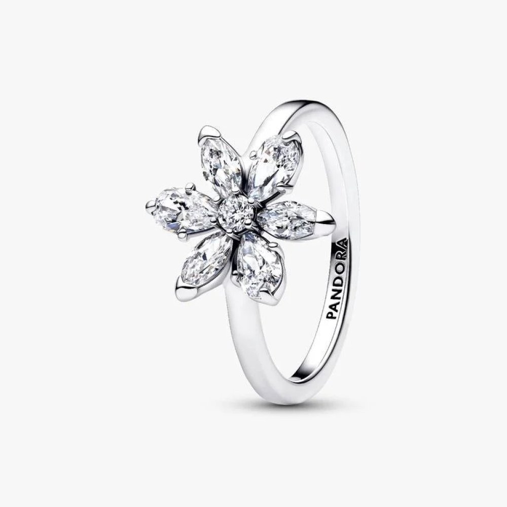 Un fiore che non appassisce mai. Realizzato in argento sterling, questo anello presenta un fiore rialzato con pietre taglio marquise, a goccia e rotonde, impreziosito da petali curvati. Un gioiello scintillante d’impatto che dura oltre le stagioni.