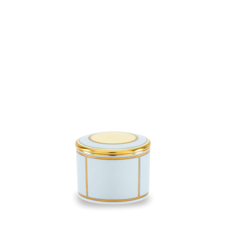 La Scatola Portagioie di Richard Ginori si distingue per il suo raffinato decoro celeste, impreziosito da una filettatura in oro che esalta il design. Il motivo giallo sul coperchio crea un contrasto di colori che illumina l'intero elemento. Presentata in una luxury box, è perfetta come idea regalo, sia per conservare e organizzare gioielli, sia come elegante elemento decorativo da esporre in ogni ambiente. Nelle mise en place più originali, può essere utilizzata per presentare sfiziosi appetizer o micro dessert. La collezione Diva arricchisce la proposta di porcellane Ginori 1735 con uno stile eclettico e dinamico. Oltre alla linea giftware, presenta un assortimento da tavola, tè e caffè caratterizzato da elementi impilabili, ideali per un servizio completo e facilmente riponibile in spazi contenuti.