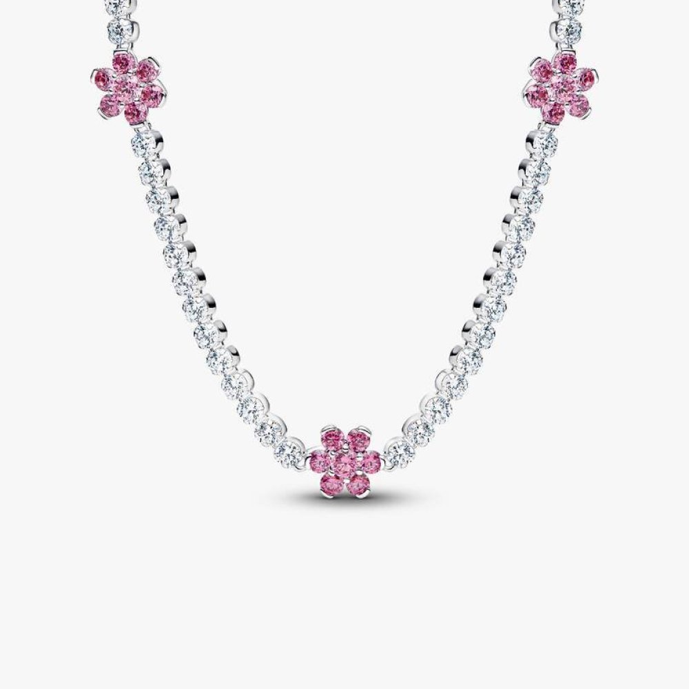 Aggiungi un tocco rosa e floreale ai tuoi look con questa collana choker, realizzata in Argento Sterling 925 con cinque scintillanti fiori di zirconia cubica lungo la catena. Un tributo colorato alla bellezza della natura.