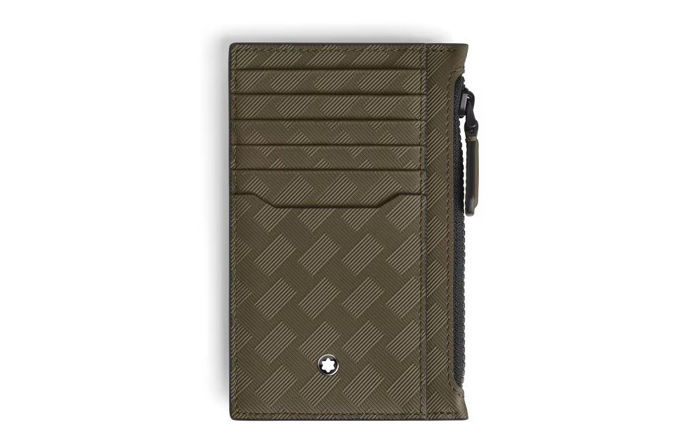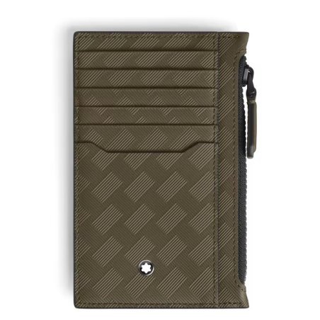 Portacarte Montblanc in pelle kaki con 8 tasche e tasca con cerniera.