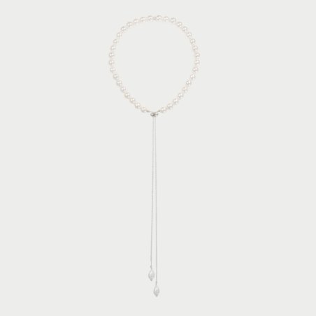 La collana Ellisse Pearl di Rue Des Mille interpreta il design sali-scendi in chiave sofisticata e contemporanea. Il girocollo di perle avvolge il collo con delicatezza, creando una base luminosa e raffinata, da cui si sviluppa una catena centrale che scende con eleganza lungo il décolleté. L’elemento ellisse, essenziale e armonioso, diventa il punto di equilibrio del gioiello, guidando il movimento della catena e aggiungendo un dettaglio geometrico discreto ma distintivo. La chiusura regolabile sali e scendi permette di adattare la lunghezza e la caduta, rendendo la collana versatile e contemporanea. Il contrasto tra la continuità delle perle, la linearità della catena e la forma dell’ellisse crea un equilibrio perfetto tra classicità e modernità. Realizzata in argento 925 con galvanica al rodio, offre una brillantezza fredda e sofisticata. Le perle di madreperla riflettono la luce con delicatezza, rendendo questo gioiello ideale per cerimonie, eventi eleganti e occasioni speciali. Pensata per chi ama uno stile ricercato ma essenziale, la Ellisse Pearl valorizza il décolleté con eleganza fluida e contemporanea.