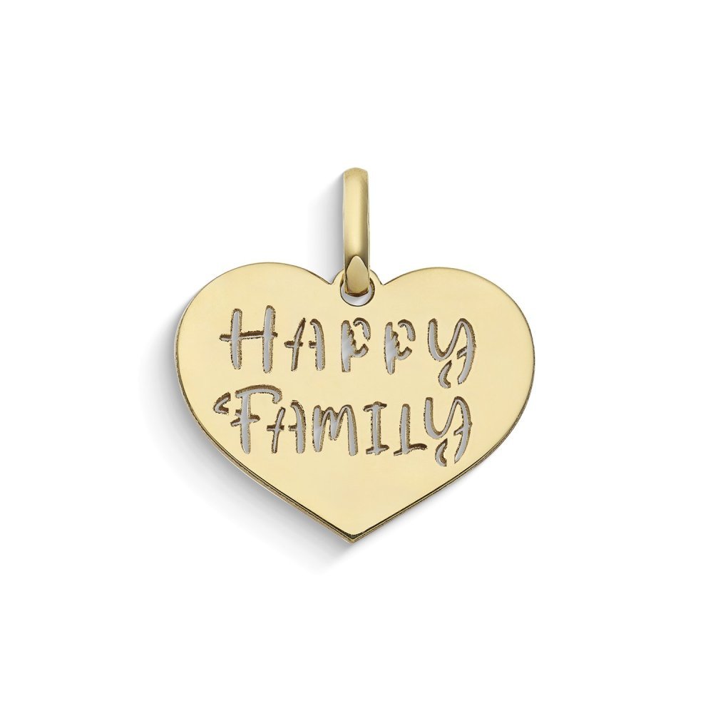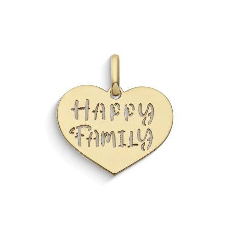 Ciondolo a cuore in Oro giallo 375‰ con scritta 'Happy Family'.