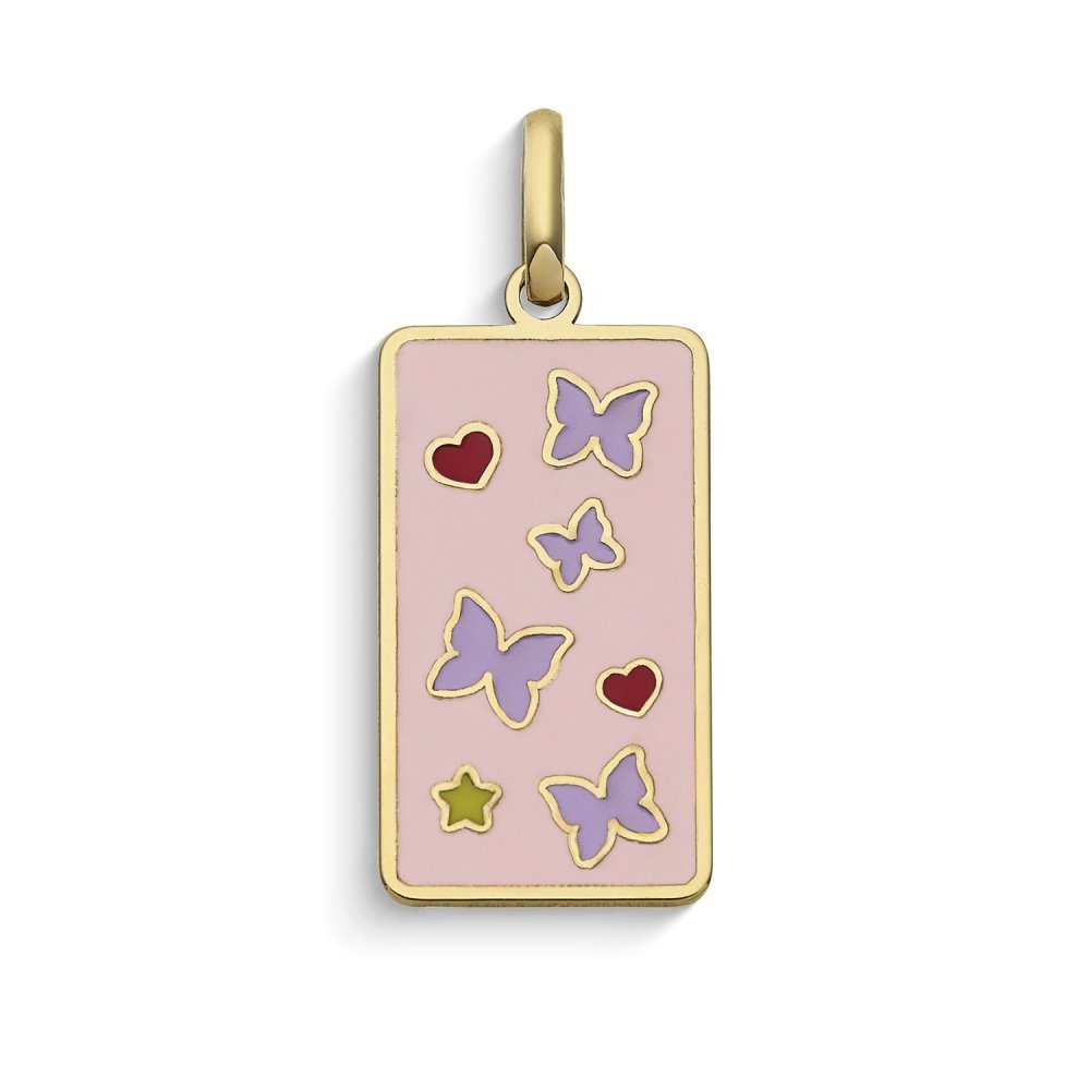 Ciondolo Rinascita in oro giallo 375‰ con farfalle e smalti.