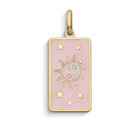 Ciondolo Equilibrio in oro giallo 375‰ e smalto rosa per bracciali o collane.