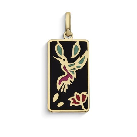 Ciondolo Resilienza in oro giallo 375‰ con colibrì e smalti, per bracciali e collane.