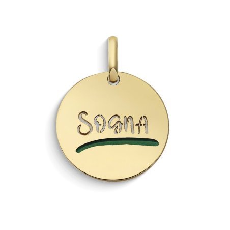 Ciondolo rotondo in oro giallo 375‰ con smalto e scritta Sogna.