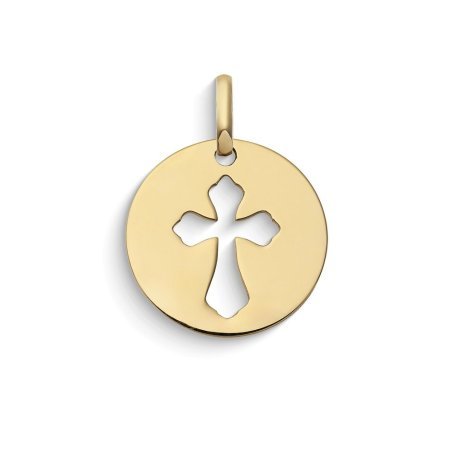 Ciondolo tondo da donna in oro giallo 375‰ con croce traforata.