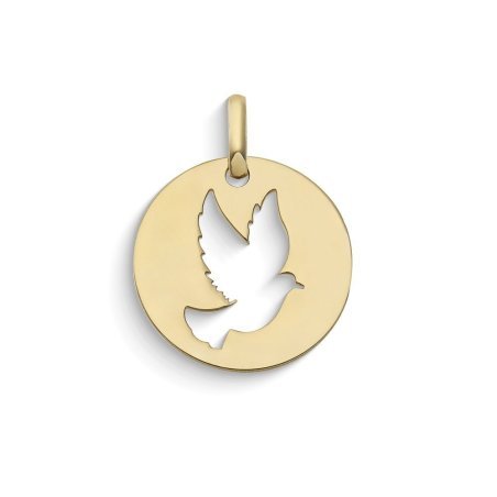 Ciondolo tondo da donna in oro giallo 375‰ con Colomba traforata.
