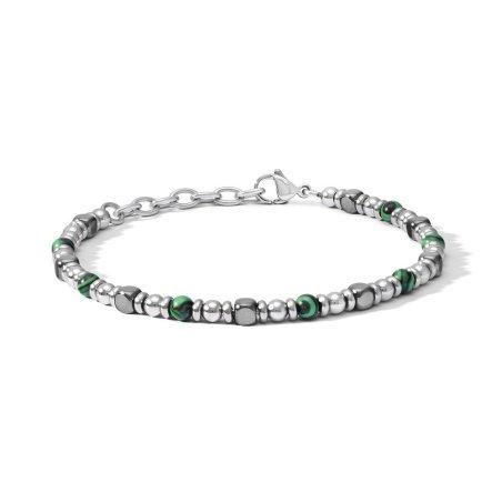 Scopri il bracciale in acciaio di Comete Gioielli, impreziosito da Malachite verde ed Ematite. Un accessorio elegante e versatile, perfetto per ogni occasione. La combinazione di materiali di alta qualità e design raffinato rende questo bracciale un pezzo unico nel suo genere. Ideale per chi ama distinguersi con stile.