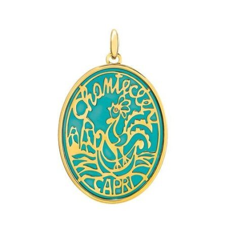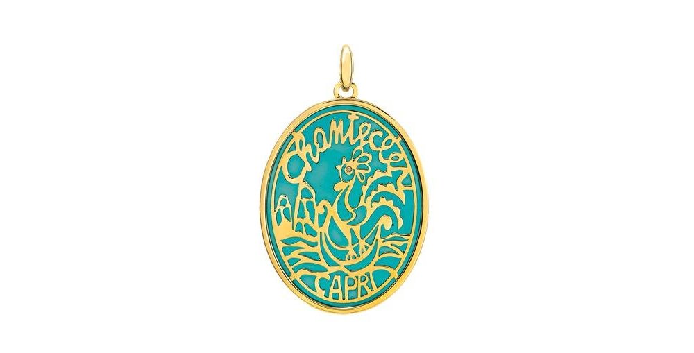 Il Ciondolo Logo Chantecler è un pezzo unico ispirato all'opera di Roberto di Alicudi, raffigurante il famoso gallo Chantecler. Realizzato in oro di 9 carati con un peso di 7,20 grammi, questo ciondolo è arricchito da un diamante, rendendolo un accessorio elegante e raffinato. Perfetto per chi ama i gioielli che raccontano una storia, questo ciondolo è un simbolo di stile e tradizione. Indossalo per aggiungere un tocco di lusso al tuo look quotidiano o per occasioni speciali.