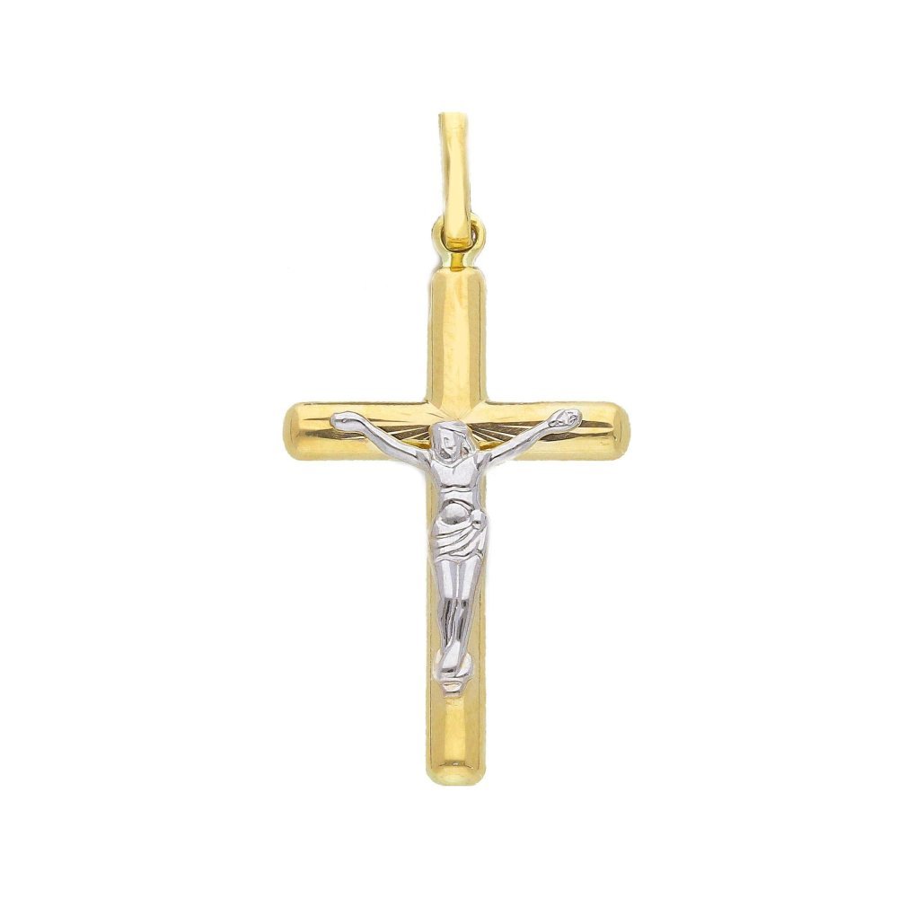 Croci Con Cristo in oro giallo e bianco 18 ct, peso 1.25g.