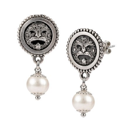 Orecchini in argento 925 con maschera e perle di Gerardo Sacco.