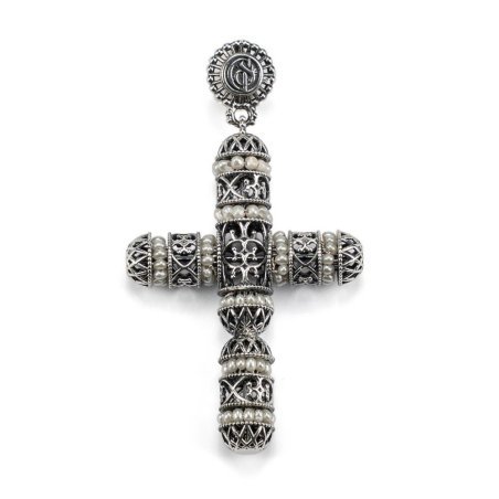 Elegante croce in argento 925 con microperle di Gerardo Sacco.