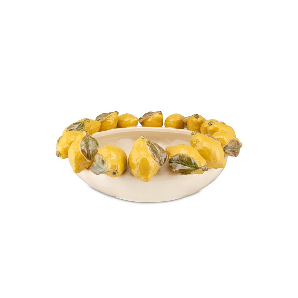 Elegante centrotavola in porcellana con motivi limone, Ø40x16 cm.